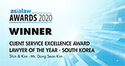 - Client Service Excellence Awards – Lawyer of the Year: South Korea, Asialaw Awards 2020